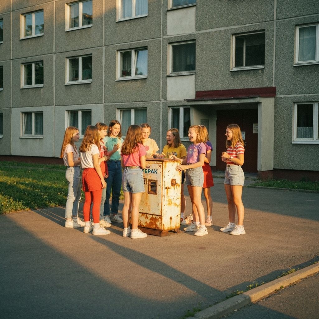 W tle gra muzyka z lat 90., która buduje atmosferę powrotu do tamtych czasów.